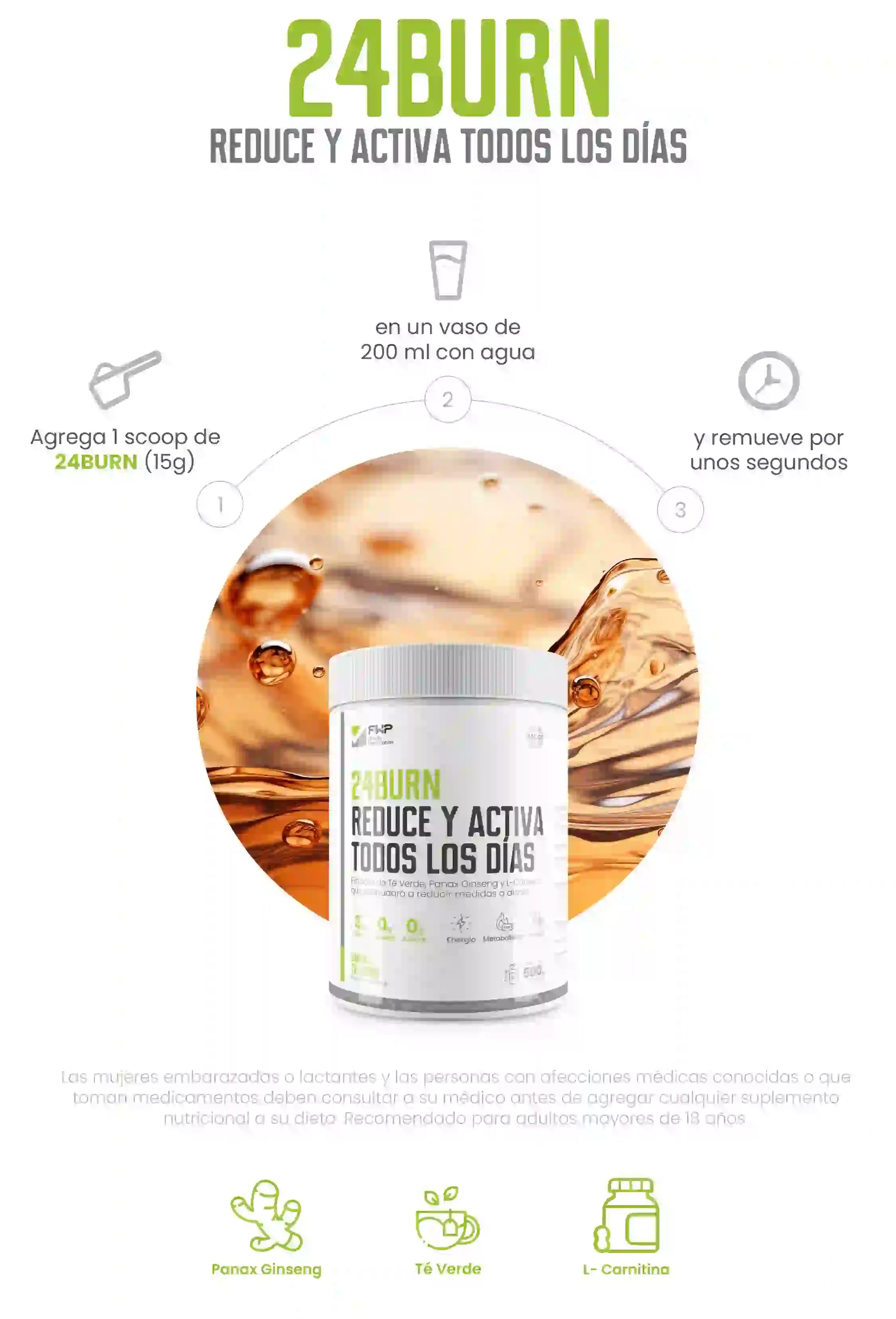 24BURN te dará energía, mejora el metabolismo, quema la grasa y elimina; Mejor salud y energía. ¡TU CUERPO, LO AGRADECERÁ!