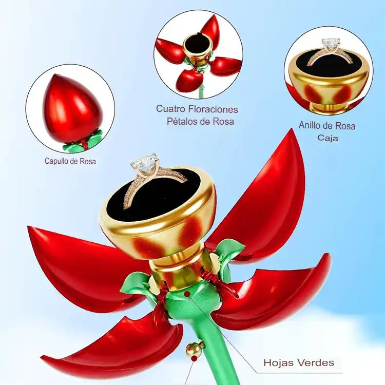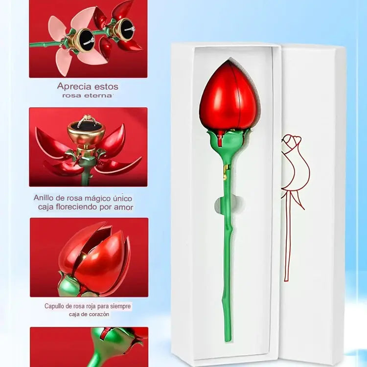 Collar Rosa Eterna con Estuche de Flor – Regalo Elegante y Emotivo - Edición Premium Joyas Caja de Anillo Rosa Eterna – Brote Corazón con 4 Pétalos Florecientes - Edición Romántica Premium.