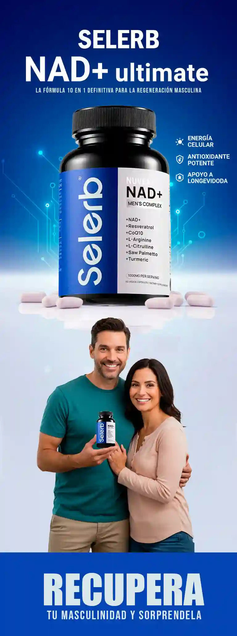 Selerb NAD+ para Hombres – Energía Celular, Circulación y Salud Prostática