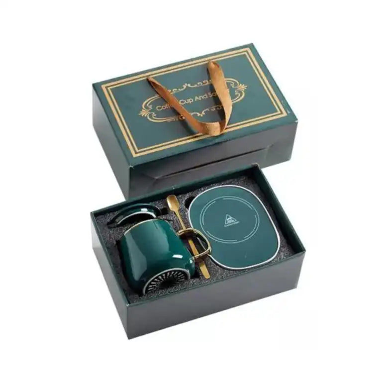 🟢 Incluye una taza de cerámica de alta calidad, tapa a juego, cucharita dorada y una base calentadora con botón táctil, todo lo que necesitas en un solo paquete.